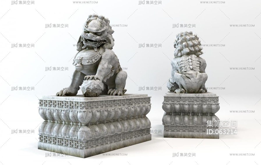 中式石狮子雕塑 3d模型下载 [模型ID:63214]