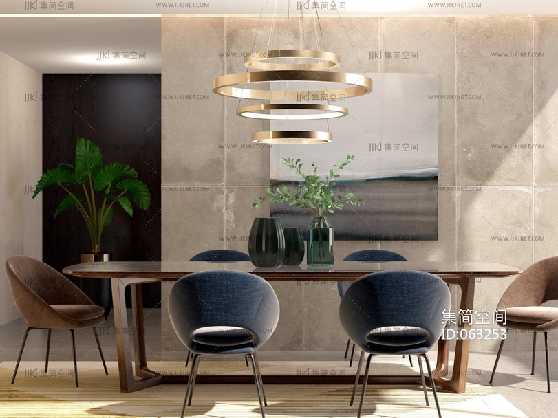 现代轻奢餐桌椅模型玻璃花瓶 3d模型下载 [模型ID:63253]