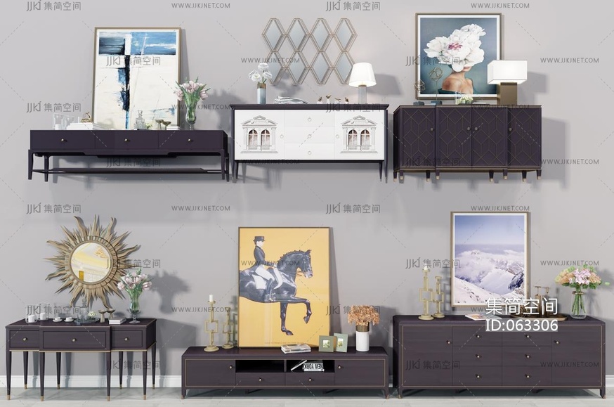 新中式欧式法式电视柜 3d模型下载 [模型ID:63306]