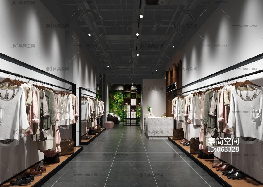 现代女装服装店,店面,衣服货架 3d模型下载 [模型ID:63328]