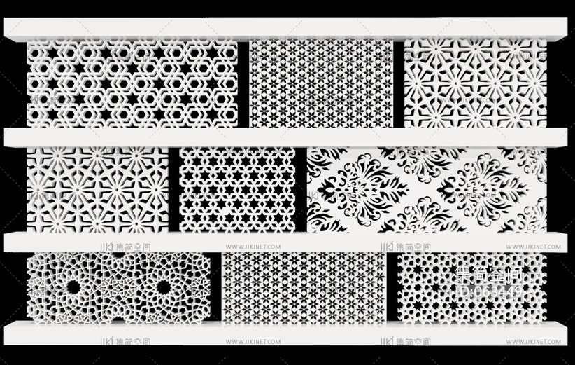 欧式法式伊斯兰雕花花格花纹墙饰 3d模型下载 [模型ID:63449]