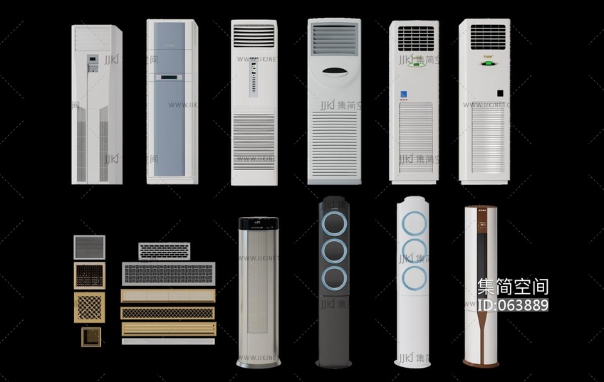 现代空调柜机立柱式空调空调风口 3d模型下载 [模型ID:63889]
