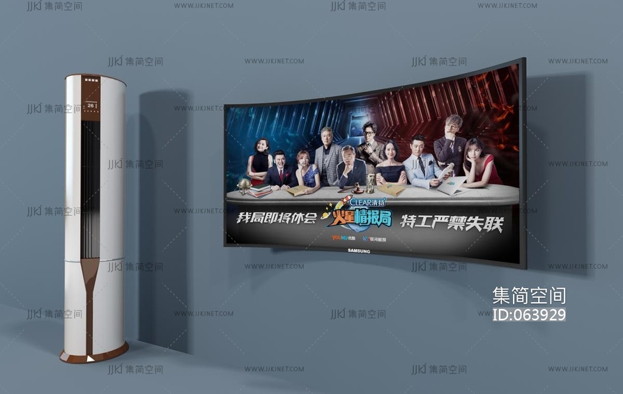 液晶壁挂电视曲面电视立柱式空调柜机 3d模型下载 [模型ID:63929]