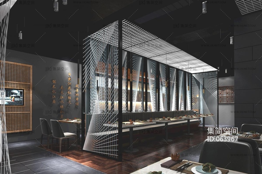 现代餐厅餐桌椅卡座 3d模型下载 [模型ID:63967]