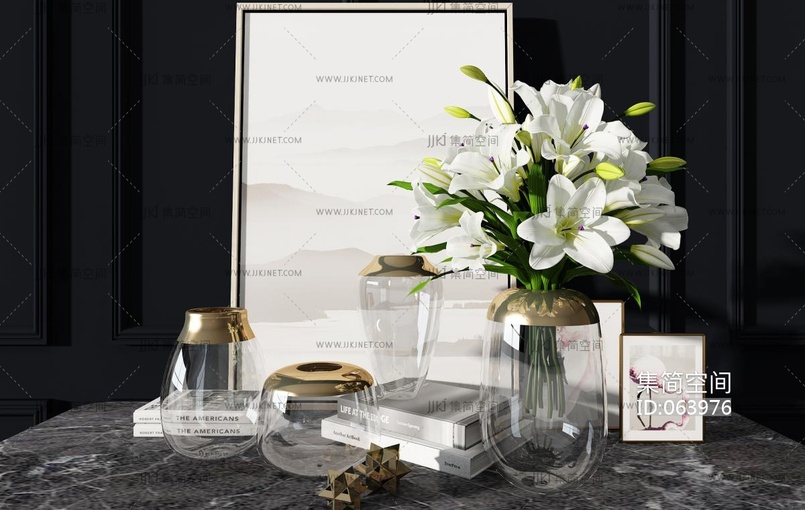 复古法式摆件组合_绿城玫瑰园会所_端景台_花艺_屏风3D模型3d模型下载