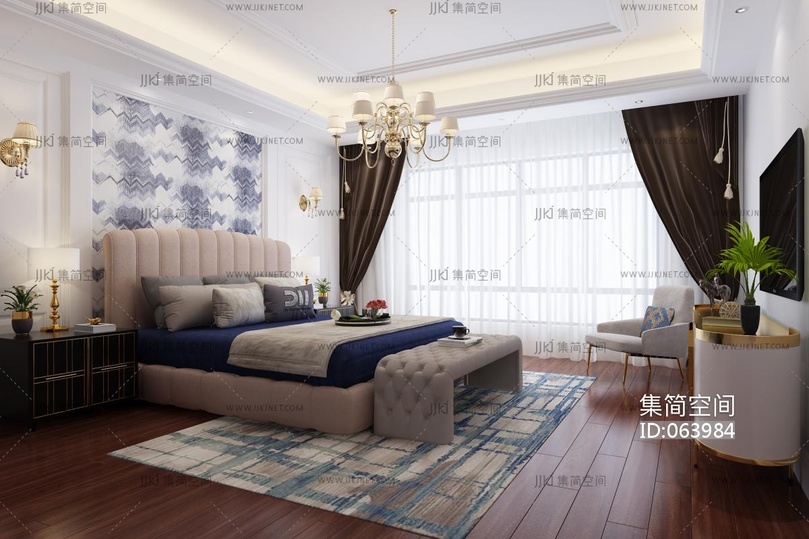 6法式中古家居卧室_主卧_飘窗卧室_高级灰卧室3D模型cr3d模型下载