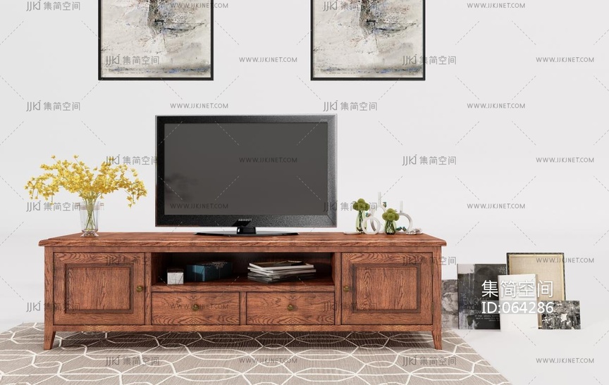 美式欧式电视柜盆栽装饰品组合 3d模型下载 [模型ID:64286]