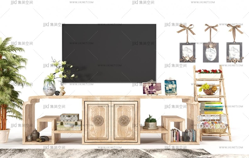 中式电视柜书柜书架花架相框挂画 3d模型下载 [模型ID:64305]