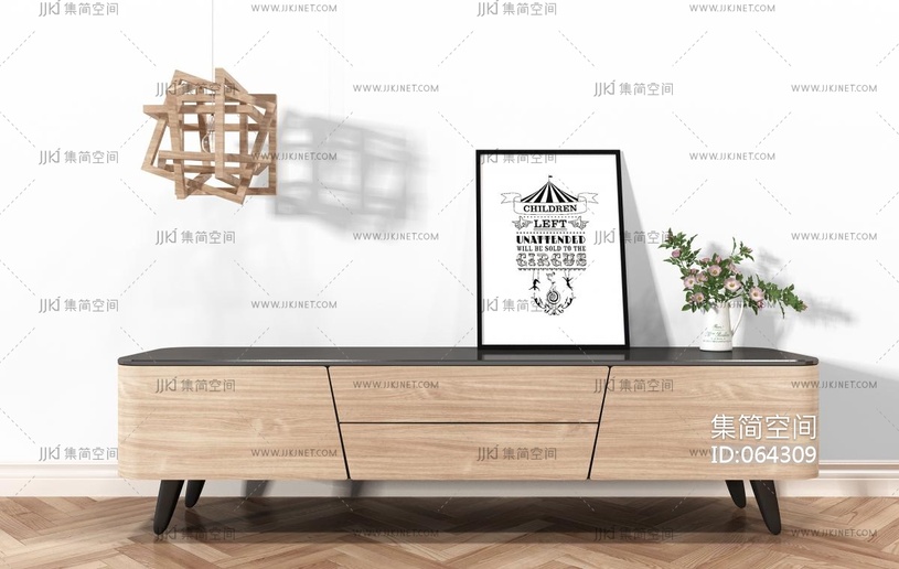 北欧现代电视柜装饰品组合 3d模型下载 [模型ID:64309]
