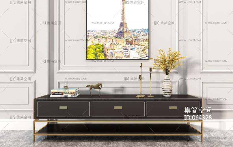 欧式电视柜 饰品摆件法式电视柜3D模型3d模型下载