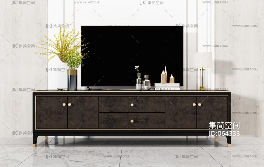 新中式电视柜花瓶摆件 3d模型下载 [模型ID:64333]