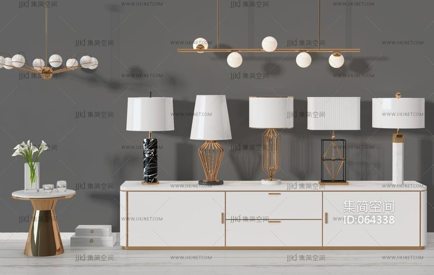 新中式简欧式台灯吊灯边几电视柜 3d模型下载 [模型ID:64338]