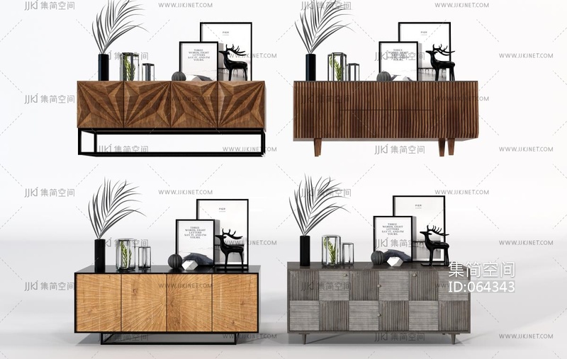 现代新中式电视柜边柜 3d模型下载 [模型ID:64343]