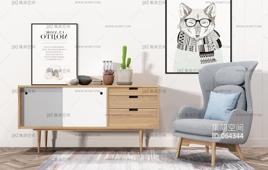 北欧现代电视柜边柜休闲沙发椅子摆件 3d模型下载 [模型ID:64344]