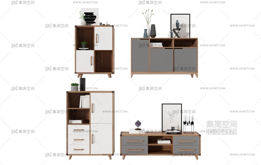 现代北欧边柜电视柜 3d模型下载 [模型ID:64379]