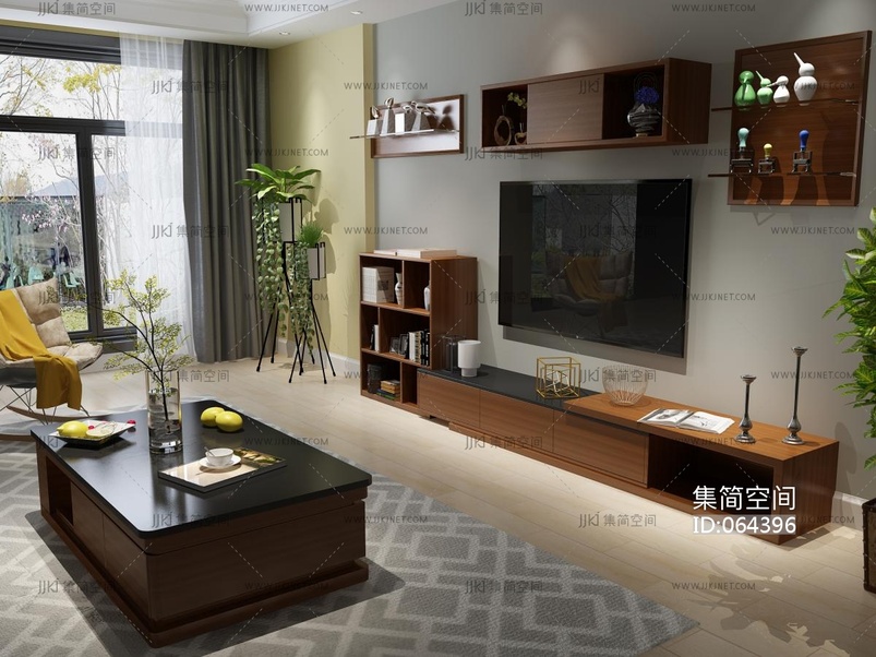 现代电视柜茶几家具植物组合 3d模型下载 [模型ID:64396]