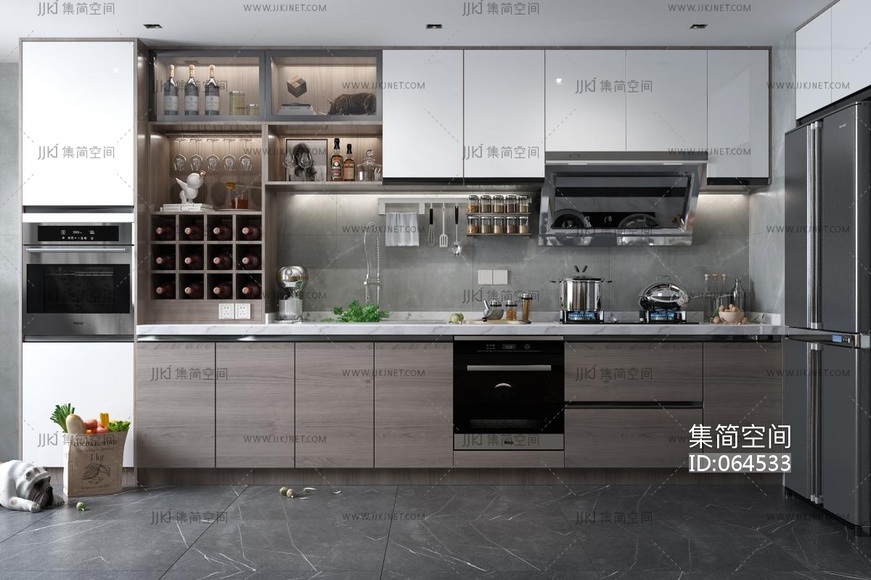 北欧现代厨房橱柜 3d模型下载 [模型ID:64533]