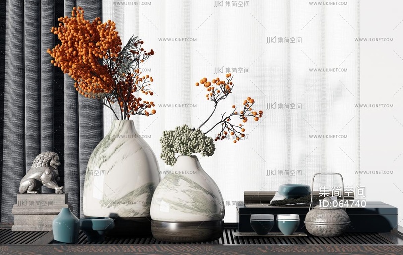 新中式花瓶饰品 3d模型下载 [模型ID:64740]