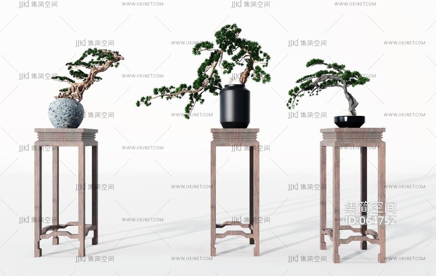 新中式古典花架盆栽盆景花盆花架3D模型(2021)3d模型下载