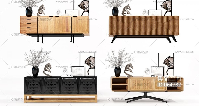 新中式工业风电视柜边柜花瓶马头雕塑 3d模型下载 [模型ID:64782]