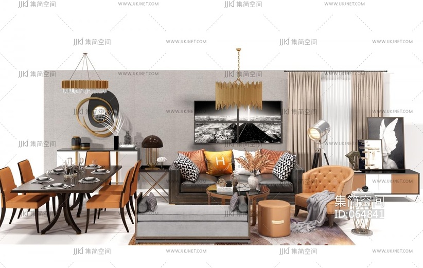 客餐厅沙发茶几组合 3d模型下载 [模型ID:64841]