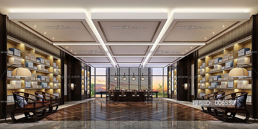 现代书房 书桌椅 壁柜 挂画 吊灯 书 盆栽 摆件3d模型下载