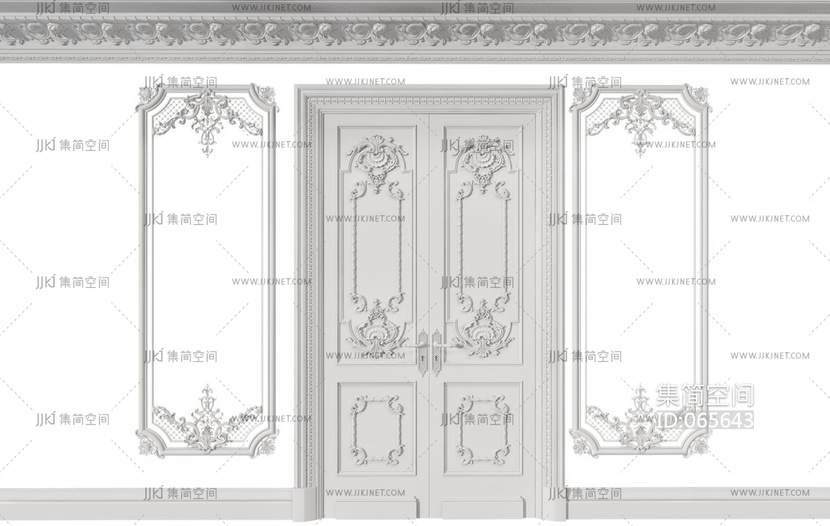 雕花石膏线双开门 3d模型下载 [模型ID:65643]