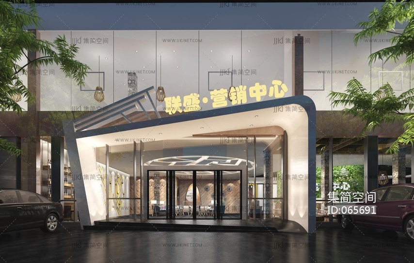 现代餐厅销售中心异形造型门头 3d模型下载 [模型ID:65691]