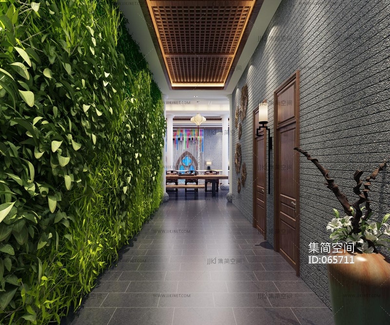 新中式茶室 茶桌 ,藤编编织吊灯,竹竿3d模型下载