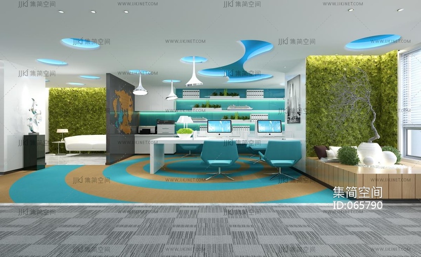 现代办公区开场办公植物墙 3d模型下载 [模型ID:65790]