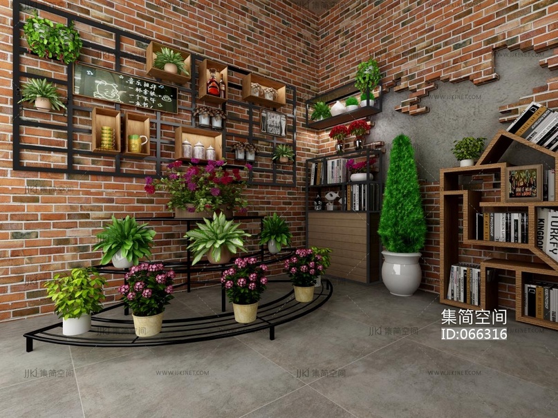 Z03-0910工业风书架花架书架花店花盆 3d模型下载 [模型ID:66316]