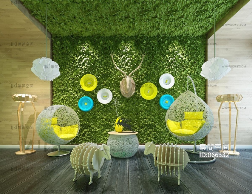 Z05-0911现代休闲藤椅吊灯小羊摆件 3d模型下载 [模型ID:66332]