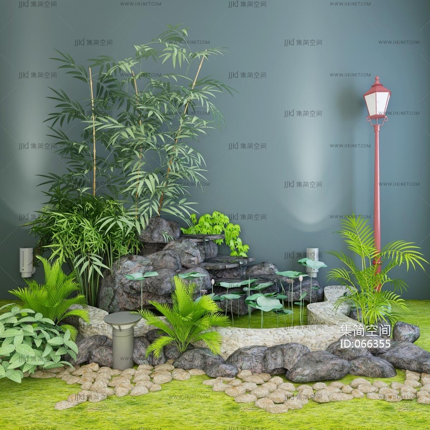 Z02-0918中式花园水池景观植物竹子路灯石头水景 3d模型下载 [模型ID:66355]