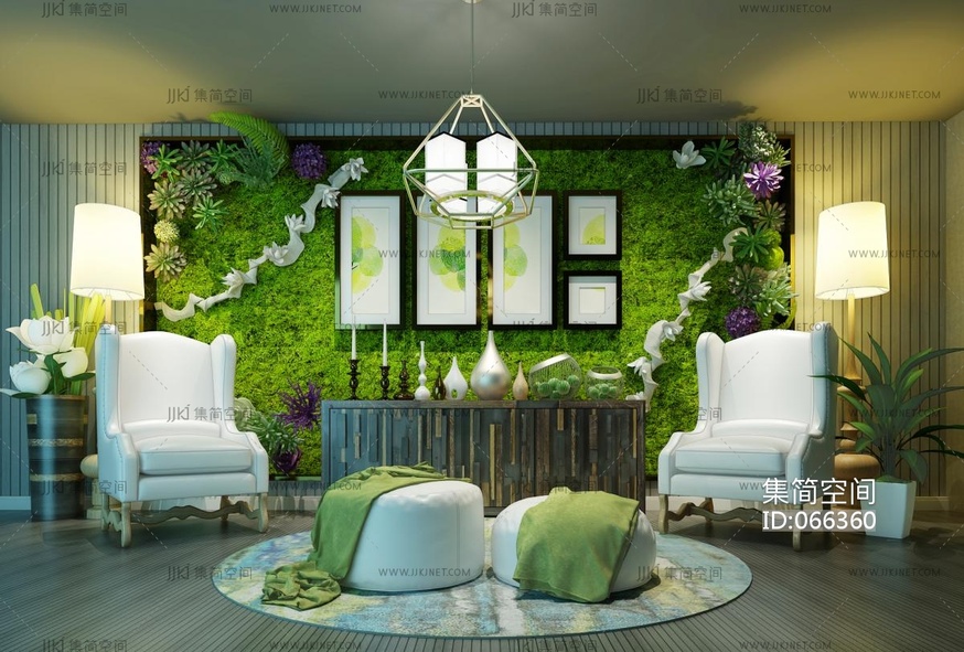 Z07-0918现代绿植墙植物墙美式高靠背沙发合 3d模型下载 [模型ID:66360]