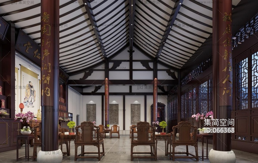 新中式祠堂中式古典实木雕花家具 3d模型下载 [模型ID:66368]