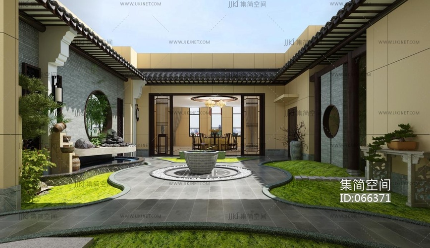 新中式庭院 庭院景观3d模型下载