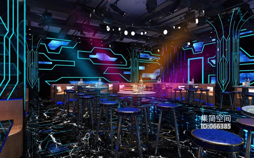 04工业LOFT工业风loft酒吧户型卡座吧凳圆桌舞台歌舞厅迪吧 3d模型下载 [模型ID:66385]
