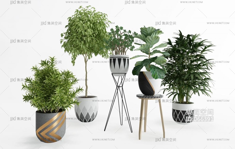 12现代植物盆栽绿植花盆 3d模型下载 [模型ID:66391]