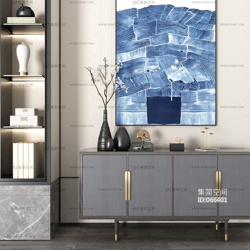 新中式玄关柜边柜电视柜花瓶摆件 3d模型下载 [模型ID:66401]
