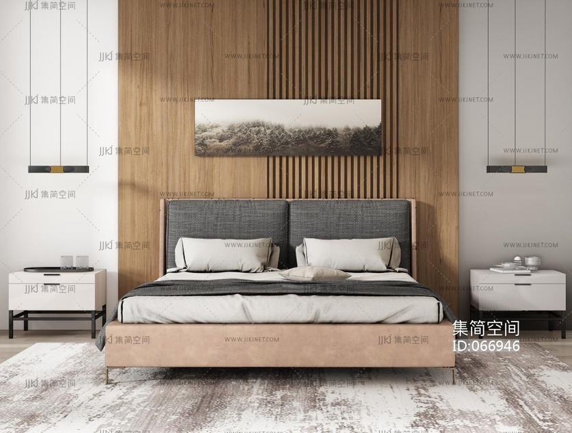 双人床床头柜组合 3d模型下载 [模型ID:66946]