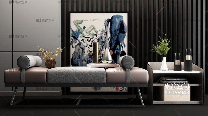 新中式墙面装置艺术品沙发凳,脚凳,床尾踏凳3d模型下载