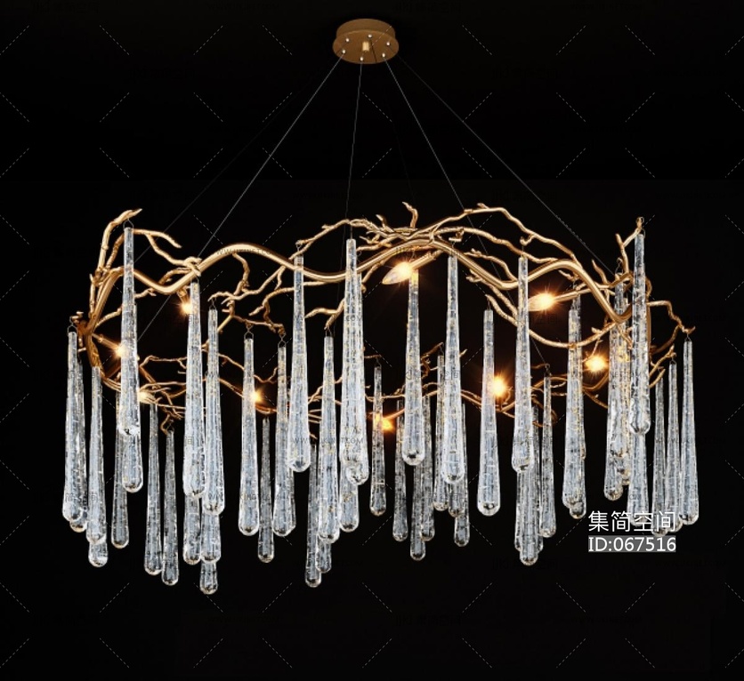 71-现代树枝水晶吊灯cr材质 3d模型下载 [模型ID:67516]