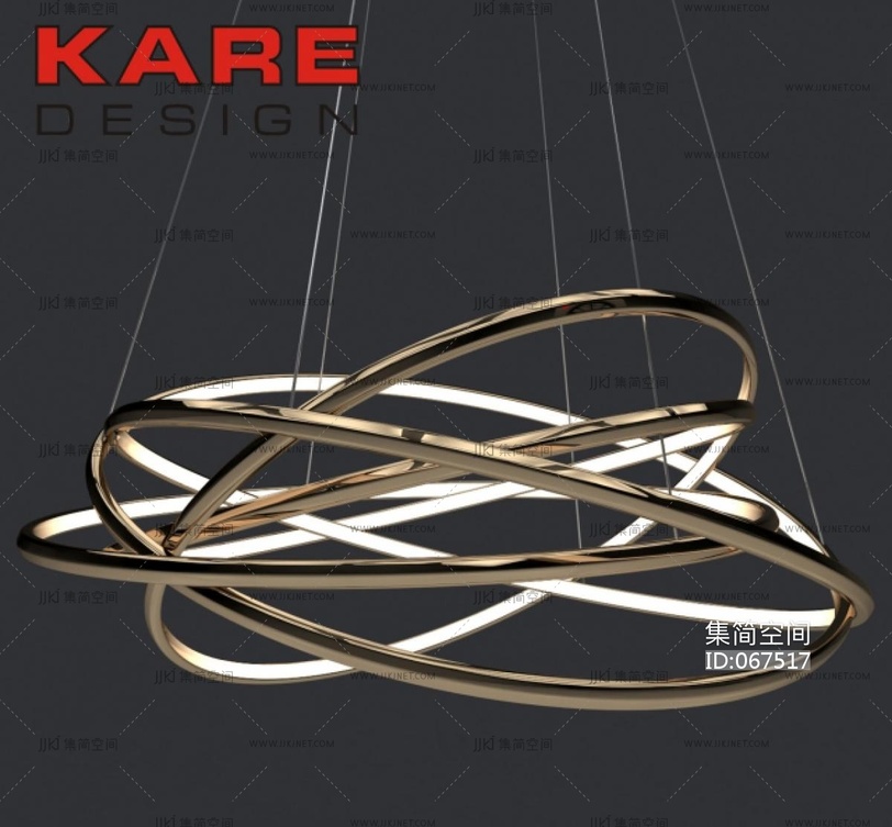 77-现代异形金属环吊灯cr材质 3d模型下载 [模型ID:67517]