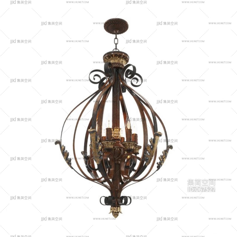 127-美式欧式铁艺金属吊灯cr材质 3d模型下载