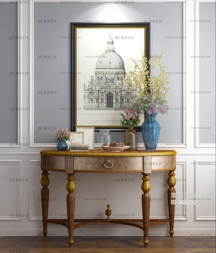 美式玄关柜摆台装饰画3D模型下载3d模型下载