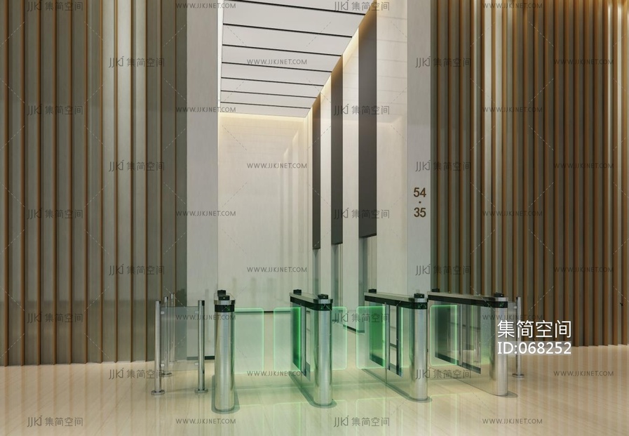 H05-1031现代写字楼大堂电梯间闸机门禁 3d模型下载 [模型ID:68252]