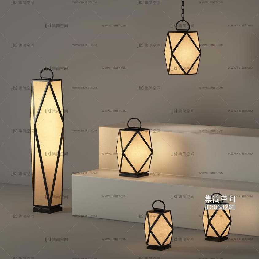 新中式吊灯长条吊灯3D模型(2021)3d模型下载