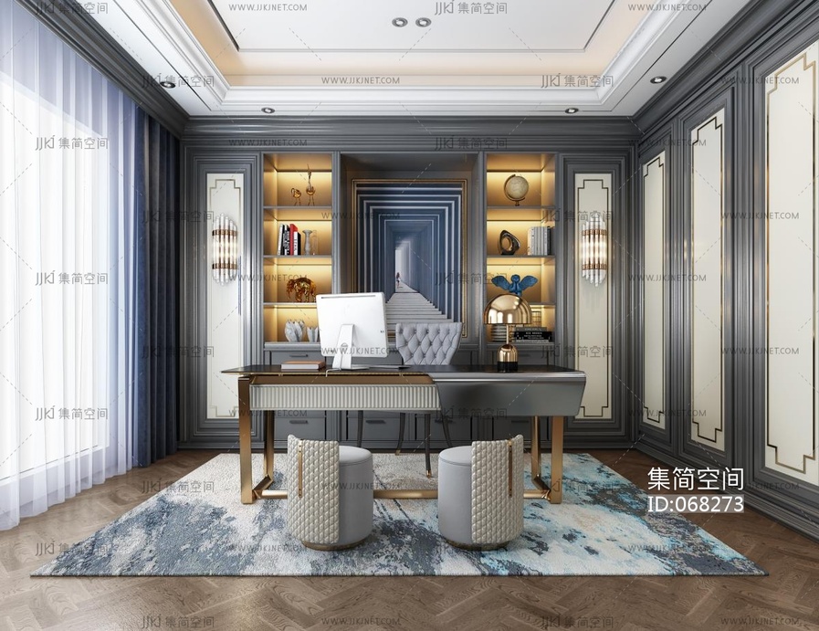 现代书房,书桌椅,书柜亚克力座椅,3d模型下载