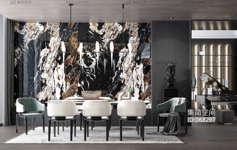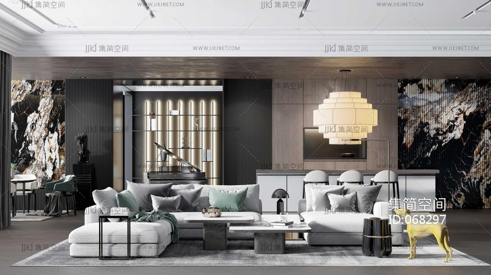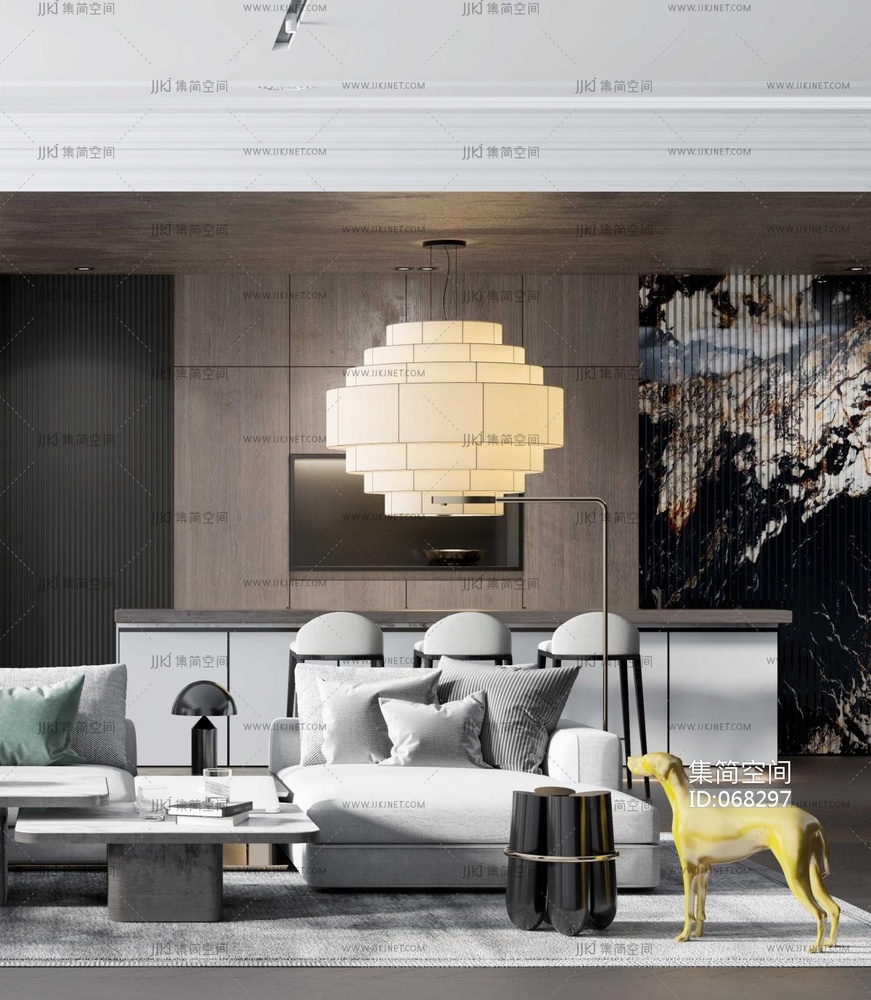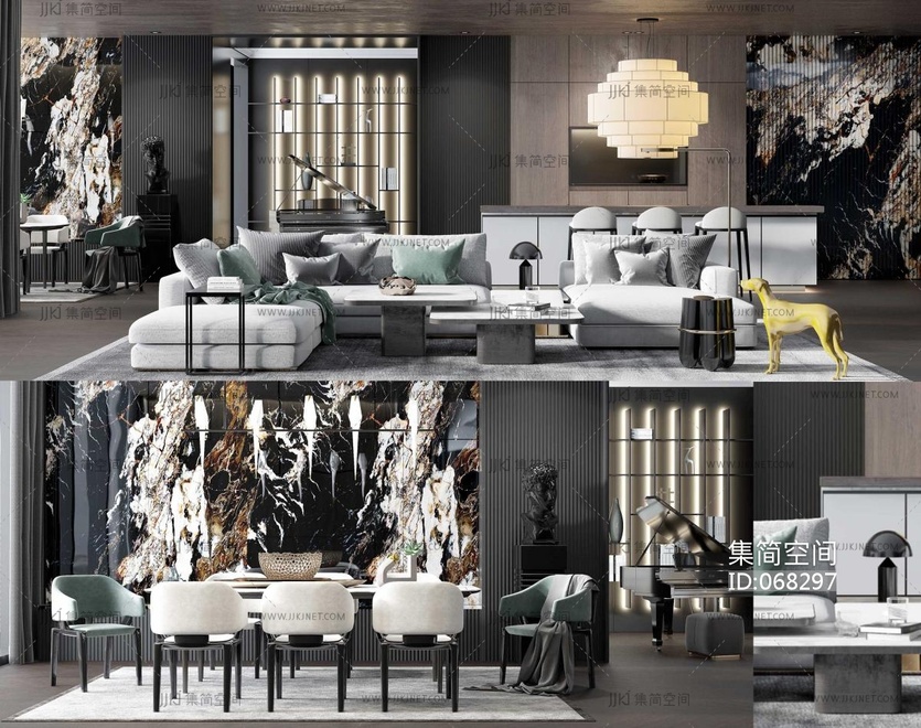 109现代轻奢新古典客餐厅 3d模型下载 [模型ID:68297]