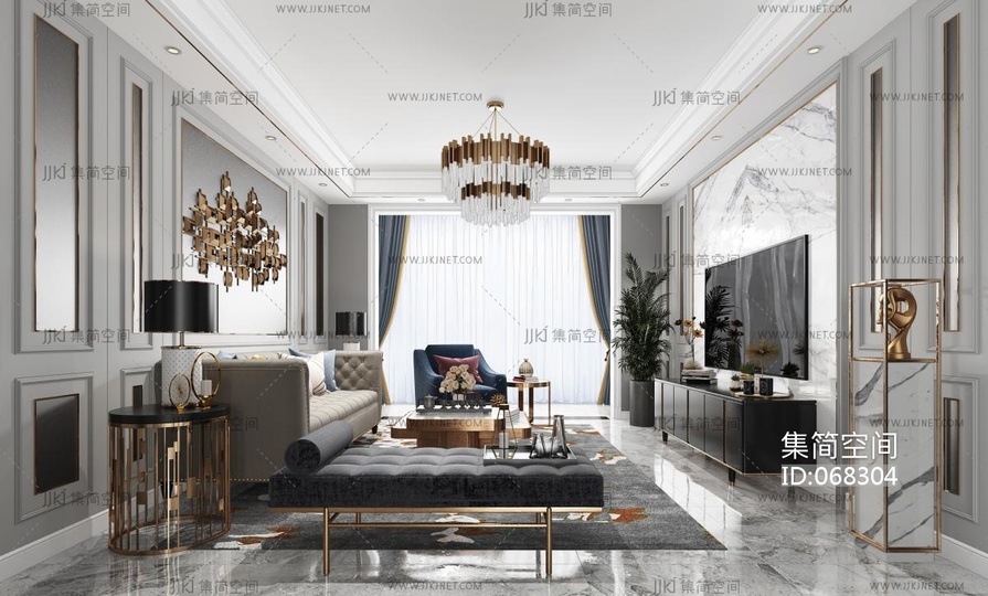 法式家居客厅3D模型3d模型下载